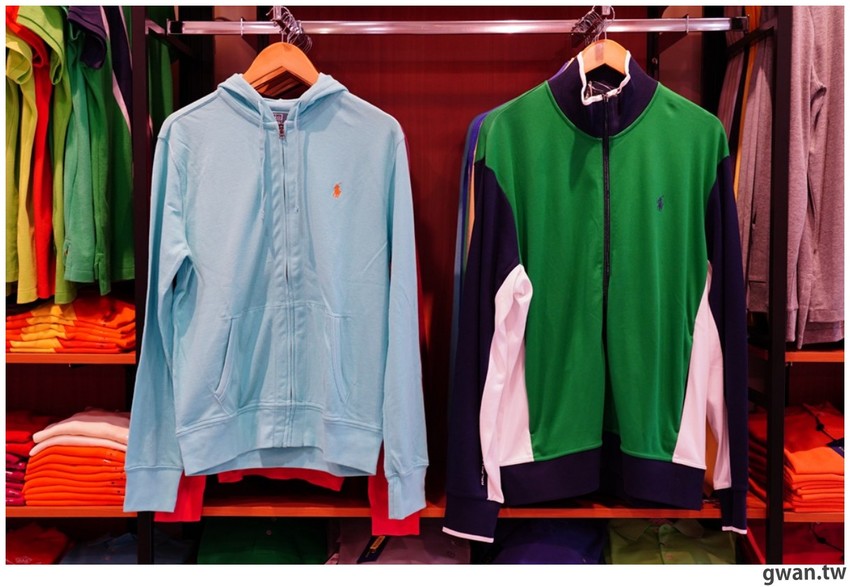 左邊的小馬連帽網眼外套,原價6380,特價1999。右邊的雙色拉鍊運動外套,原價8180,特價2699,現省5481