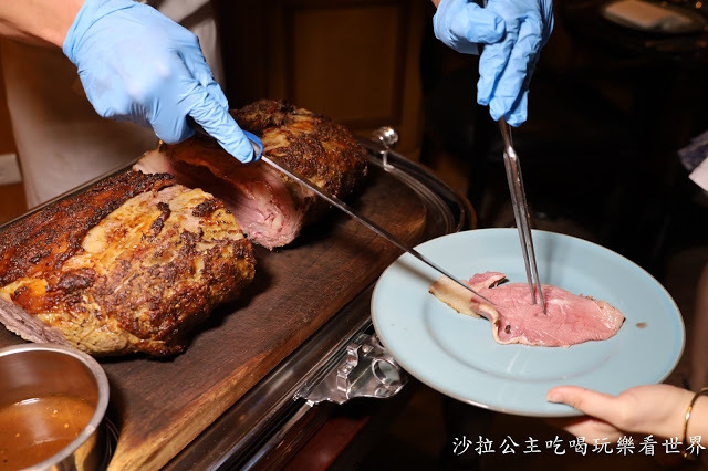 美國頂級Prime肋眼牛肉抹上黃芥末醬,以迷迭香、海鹽、黑胡椒、大蒜等香料醃上兩天後爐烤而成