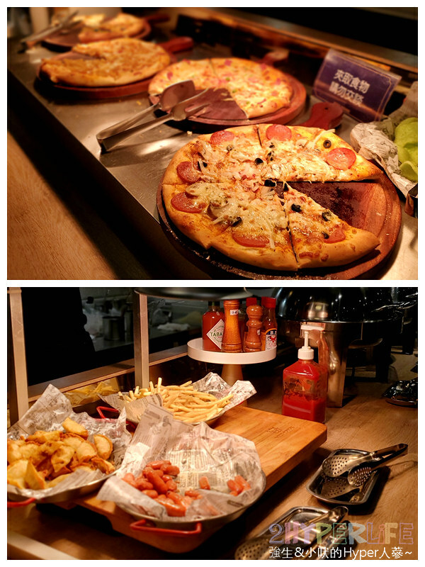 平日只要299元起自助吧就可以吃到飽,內容物有披薩、炸物、熱炒、咖哩飯、沙拉水果、杜老爺冰淇淋、自製果凍和精選的點心,可說是非常划算啊
