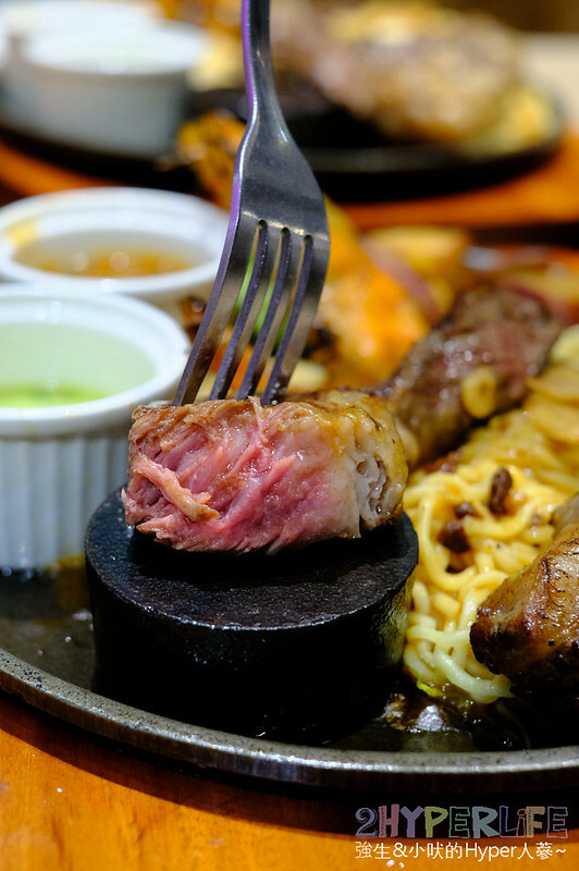 如果稍微覺得不夠熟,也可以放在旁邊的石頭上面炙燒一下,這塊真的很燙,不要想要用手指測試溫度我知道很多朋友吃飯都很故意,那烤焦的是自己的手指不是牛排囉