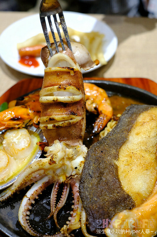 今天來就是準備來個蛋白質大補充,能夠同一盤菜吃到5種不同的海鮮,而且份量又超大,實在過癮啊!裡面有深海大魷魚、鮭魚、冰島比目魚排、日本奶油干貝還有馬來西亞超級白蝦!