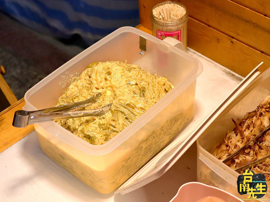 最特別的是每份章魚燒都附贈老闆自製小菜,聽老闆說小菜會依時段推出不同種類,像是海帶芽、黃金泡菜、溏心蛋等