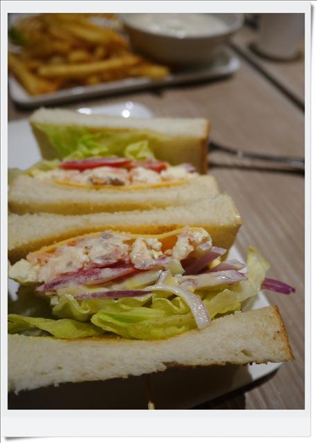 三明治有先烤過 所以吃的時候會有烤過的麵包香 而且外層有酥酥的口感