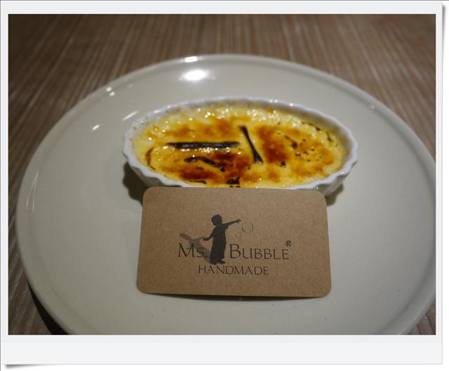 香草布丁上面有一層炙燒的薄脆糖衣 看起來是蠻美的啦
