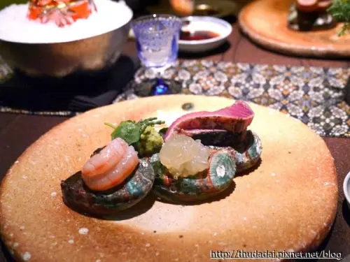炙燒干貝與舒肥甜海蝦佐義式老醋膏