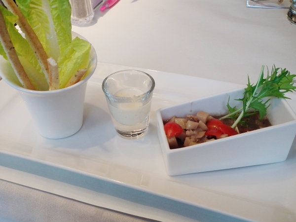車上,很快地點餐就來囉,我們當然要好好的來享受一下,先送上來的是固定的前菜