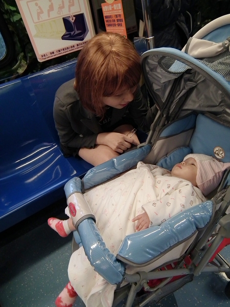 封面照片重點:我們一家三口第一次帶推車搭捷運出遊囉~