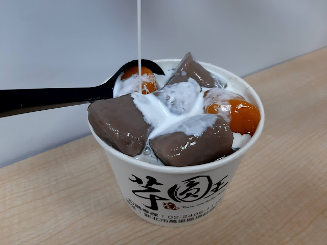 芋頭香氣足也有些許芋頭顆粒感,番薯圓香甜,已經榮登目前我吃過的芋圓第一名。加上萬惡奶油球以及仙草,完全滿足。