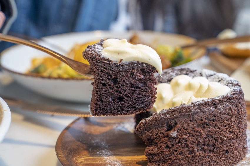 「強的蛋糕」是貳樓餐廳經典甜點之一,嚴選比利時巧克力搭配全美起司餡,製出口感綿密濕潤,同時保有濃厚巧克力香氣的蛋糕,配上起司餡誘人乳香,吃過的人都一秒被圈粉!