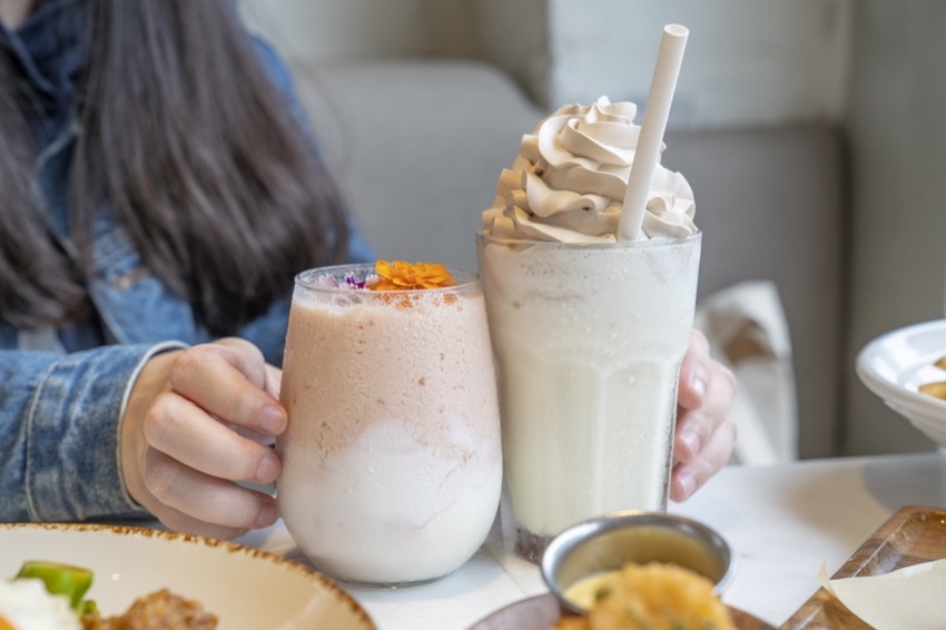 使用覆盆莓、水蜜桃、優格和牛奶調製成香甜清爽的優格冰沙,粉嫩的顏色非常討喜,吃完這麼多肉食餐點,喝一口蜜桃美莓優格冰沙超解膩!另外「不敗香草奶昔」也是必點飲品,香草冰淇淋香甜奶味冰冰涼涼很消暑,喜歡喝奶昔首選就是它!
