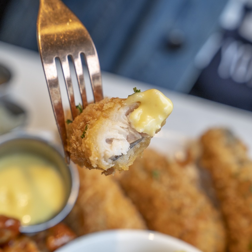 雙層漢堡使用了「炸沙巴魚」以及「7oz牛肉餅」雙主肉拼製而成,搭配厚培根、起司、生菜番茄,淋上蜂蜜芥末醬提味,整份漢堡疊得又高又厚實,吃一份可以飽到一整天!
