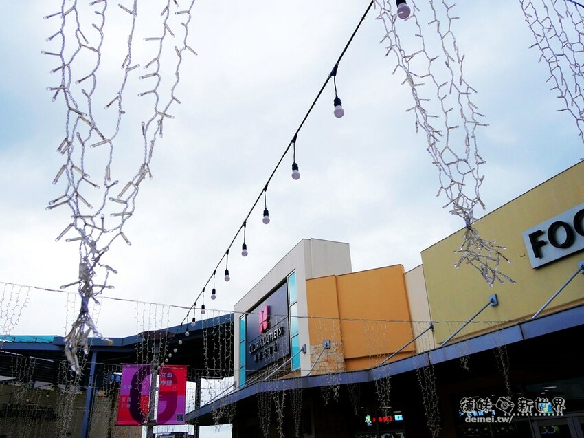 連接各期outlet的通道上方都用燈飾串聯裝飾著,