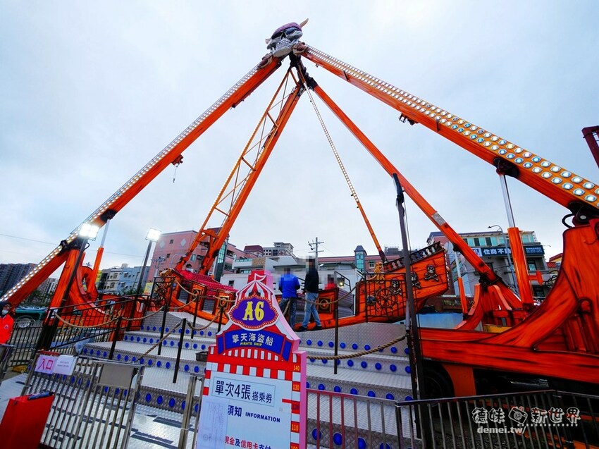 園內有好玩的大港尖叫飛天輪、勤天海盜船、搖擺波浪、瘋狂颶風、翱翔天際等超狂設施。