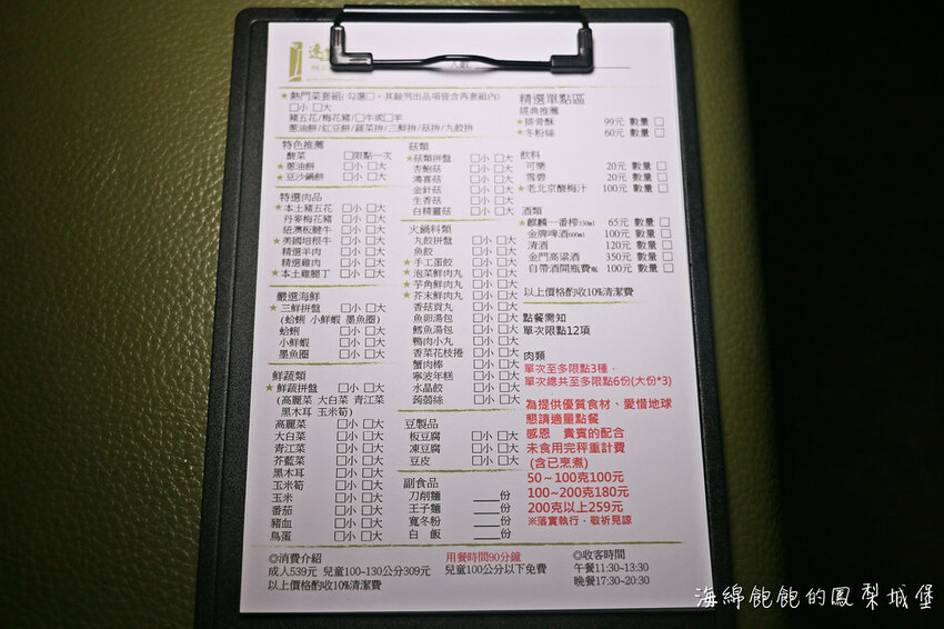 食材採單點式吃到飽,用餐限時90分鐘!