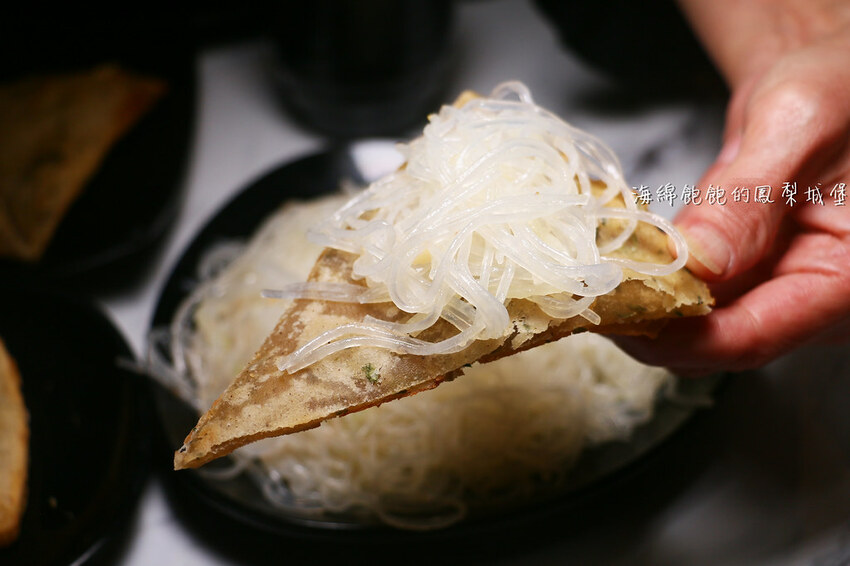 店員推薦我們組合吃法,把蔥油餅夾著冬粉絲