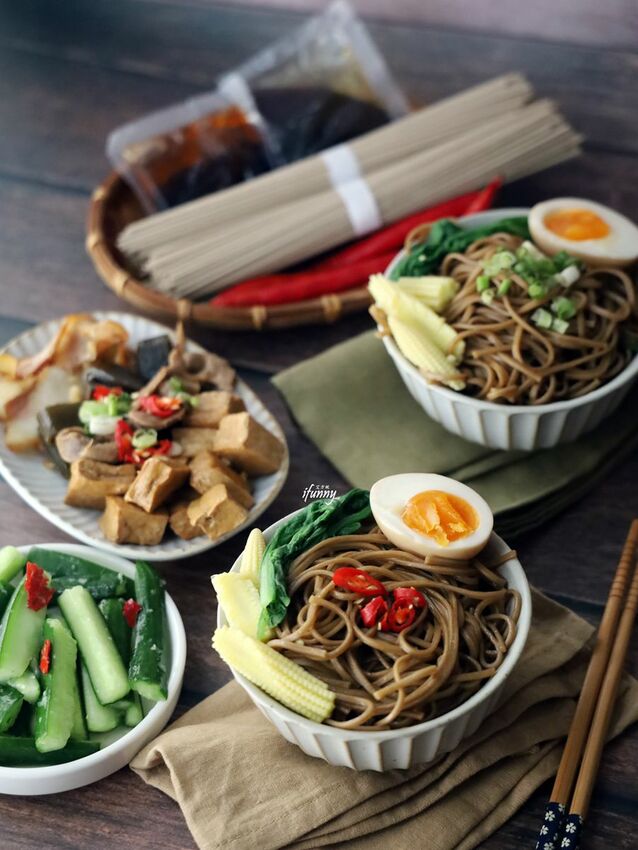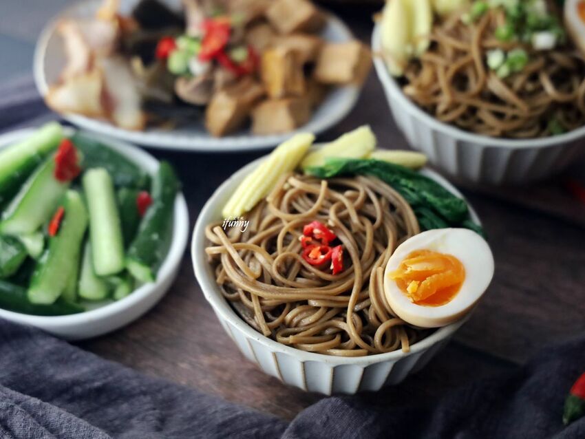 最近天氣很不穩定,隨著降雨溫度也向下探,此時在家料理也是種療癒的過程。上網學了涼拌小黃瓜及溏心蛋的作法,然後去全聯買了滷味及青菜,回家後燙了青菜及茶拌麵,再連同小菜一起上桌,如此就是簡單卻滿足的一餐。