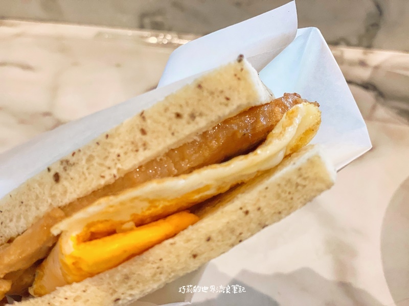 這個肉也太厚了吧!!!???!!!! 老闆!!! 幾乎是吐司的1/2厚耶!!! 而且老闆強調不使用組合肉而是使用溫體豬肉,這麼厚的里肌太驚人了吧!!! 不僅視覺厚度滿分,香氣濃郁、口感有嚼勁,吃得很滿足!