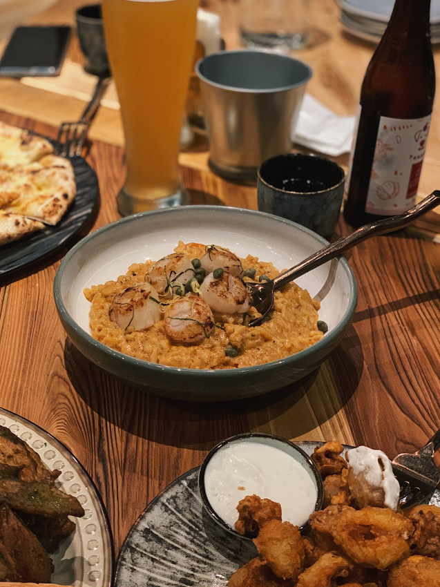 這次點得主食,除了剛剛提的金沙漁夫380$(NTD),還有北海道干貝蝦膏起司燉飯560$(NTD)及紐西蘭帶骨小牛嫩肩排燉飯580$(NTD)。真的完全沒有踩雷!唯一要注意的就是北海道干貝蝦膏起司燉飯也必須趁熱吃。