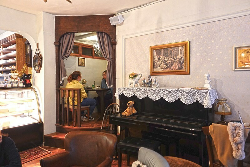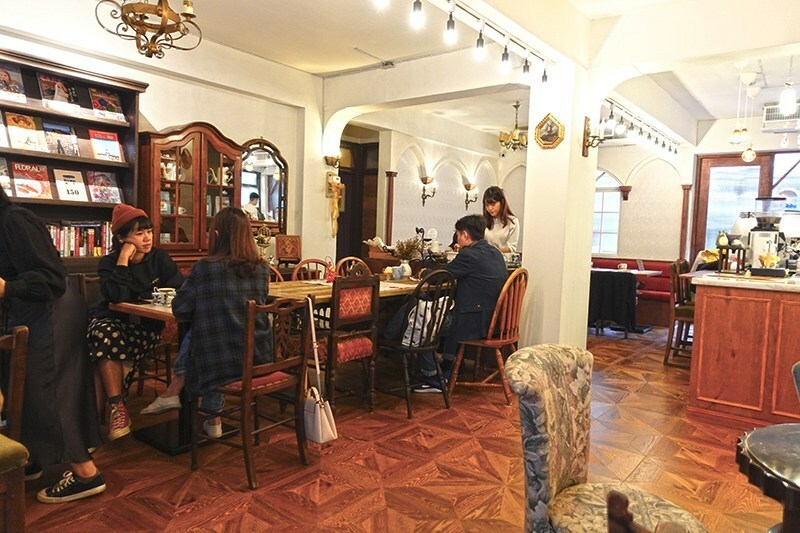 走進店門口的深色木門及玻璃落地窗,內部透著溫暖黃光,旁邊小櫥櫃擺著餐點的模型,跟日本的街道咖啡廳幾分神似