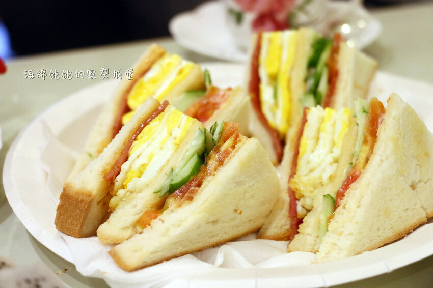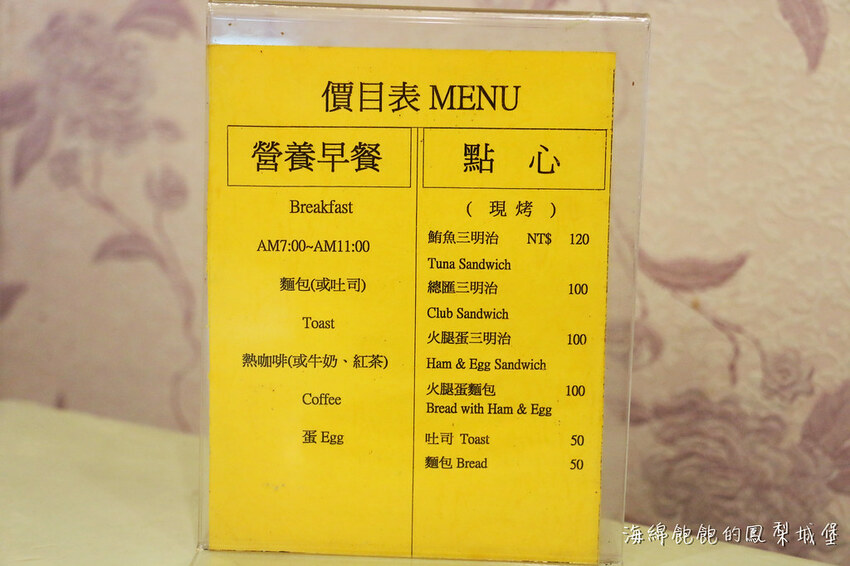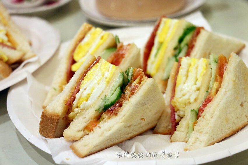 餐點有鮪魚三明治、總匯三明治、火腿蛋三明治、火腿蛋麵包、吐司、麵包