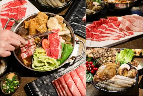 套餐內容: 霜降牛、松板豬、紐西蘭小羔羊(三擇二,各80克)、培根牛、梅花豬、雞肉片(三種肉吃到飽)各式飲品、自助吧暢食
