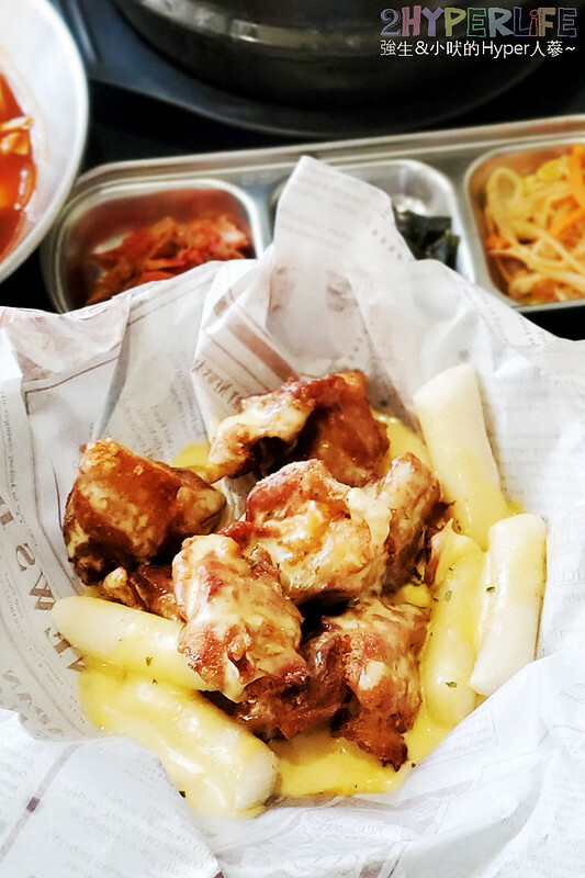 起司味蠻香濃的, 旁邊的年糕比較有嚼勁,炸雞肉質軟嫩而且還吃到到雞軟骨的部分還不錯😘