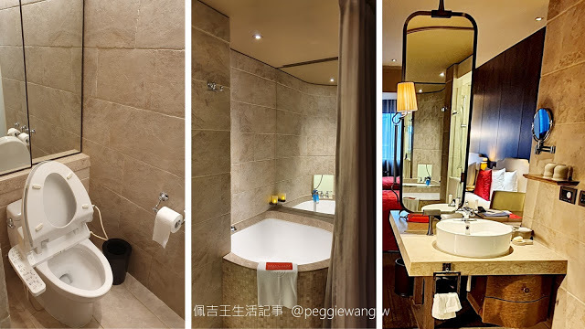 | 圖:衛浴設施各據一方XD,自己一間的免治馬桶、很開放的洗手台、很深的半圓型浴缸,還有獨立淋浴間(沒拍) |