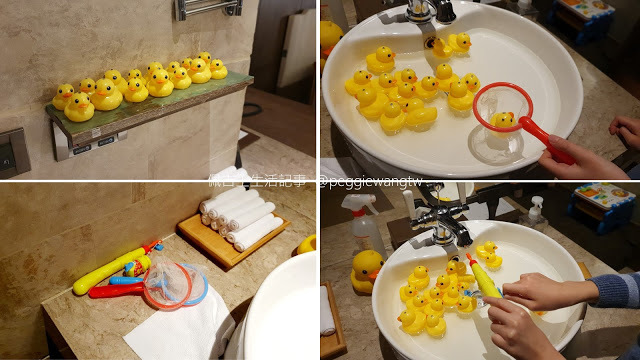 | 圖:洗手台被拿來當作釣鴨鴨用,很會利用啊(佩服) |