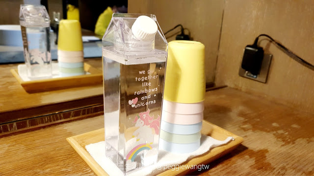 | 圖:遊戲室裡的可愛透明水壺、水杯 |