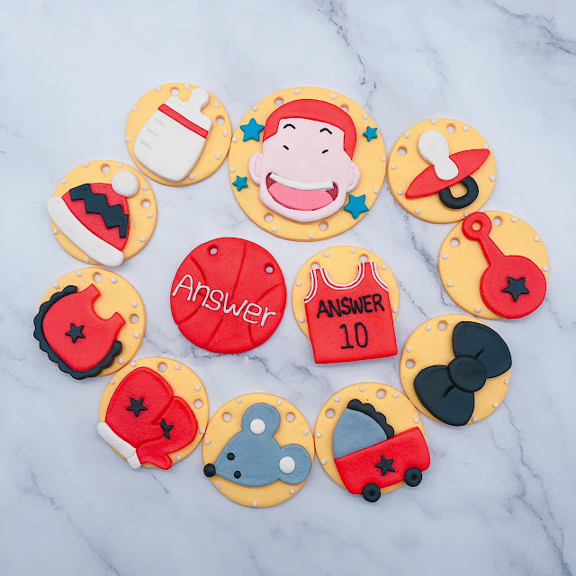 去搭配1款主造型餅乾、1款寶寶名牌、1款寶寶生肖,所組成的12片收涎餅乾。
