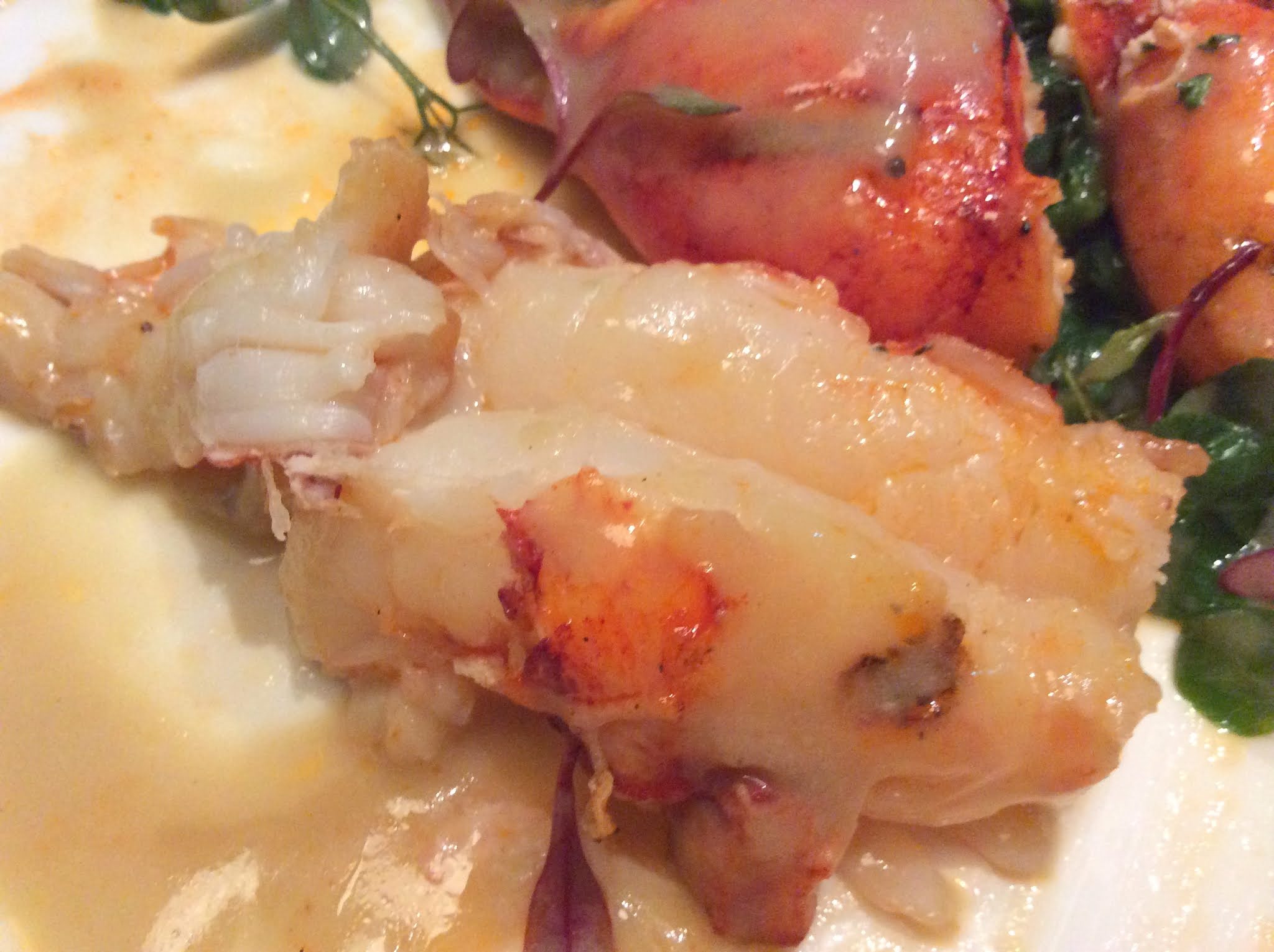 主廚已將半隻波士頓龍蝦去殼,兩隻螫足也已去殼,肥美的
