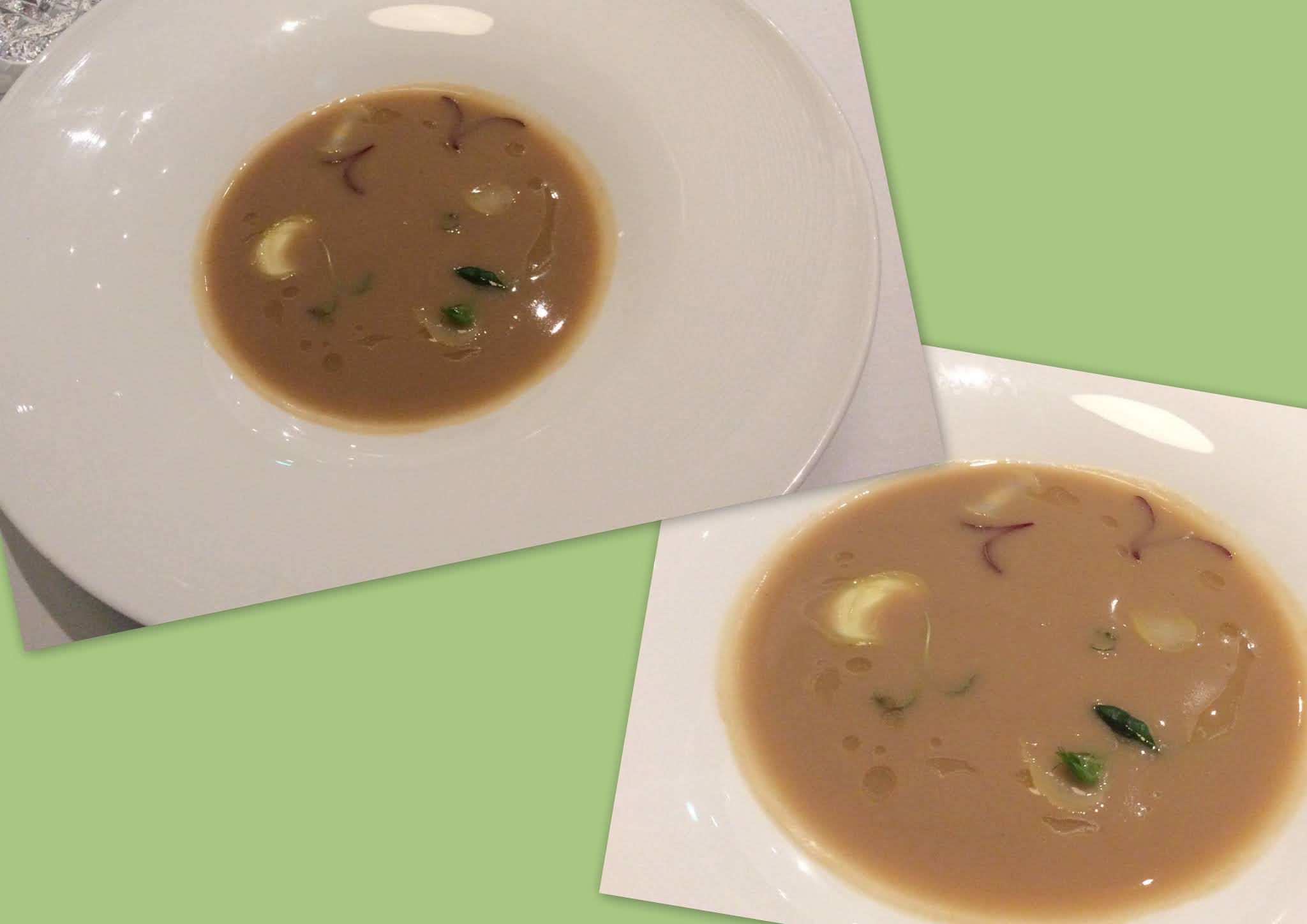 【栗子濃湯佐榛果油】在西式餐飲中還是頭一回嚐鮮,知道栗子有