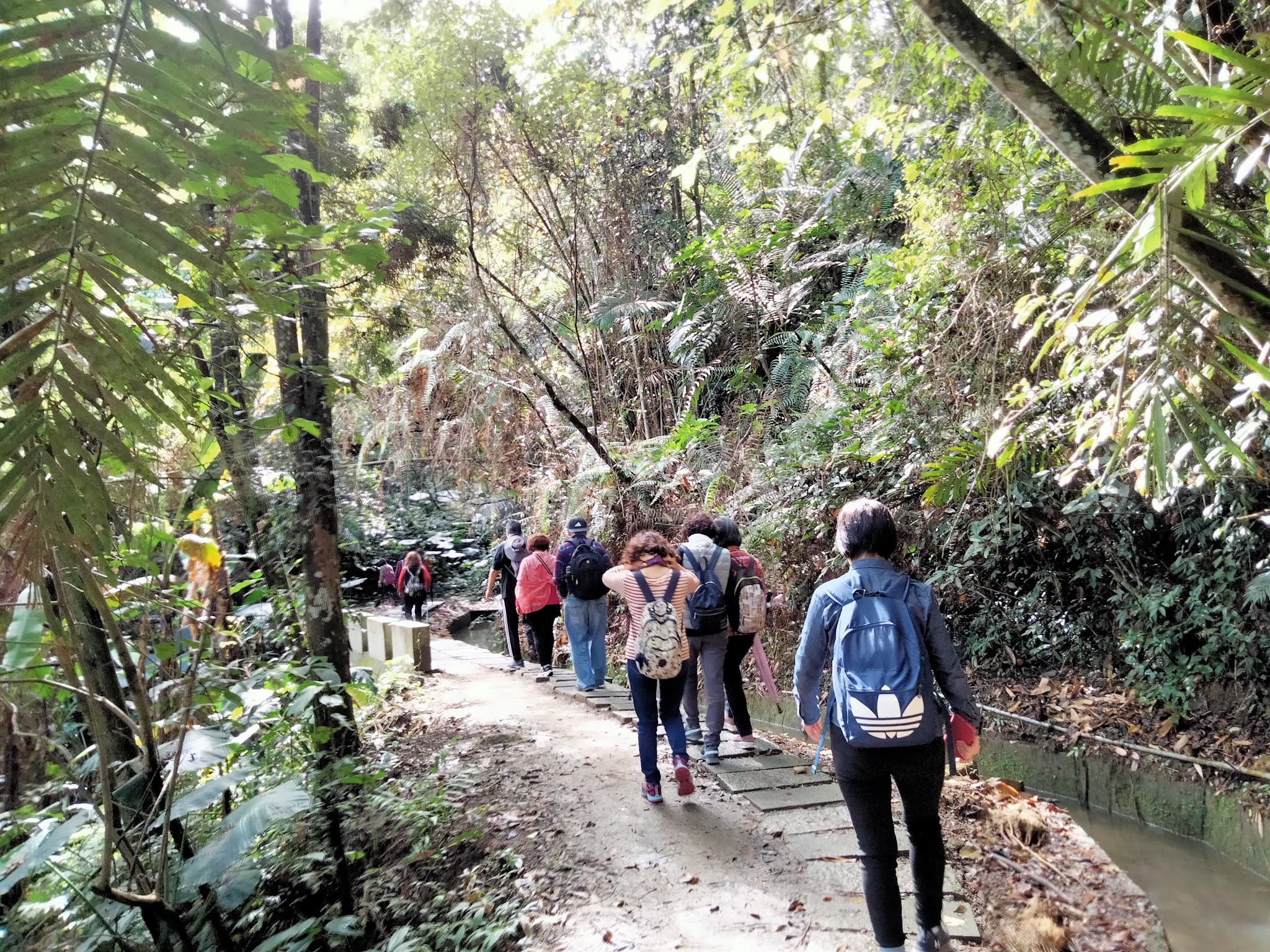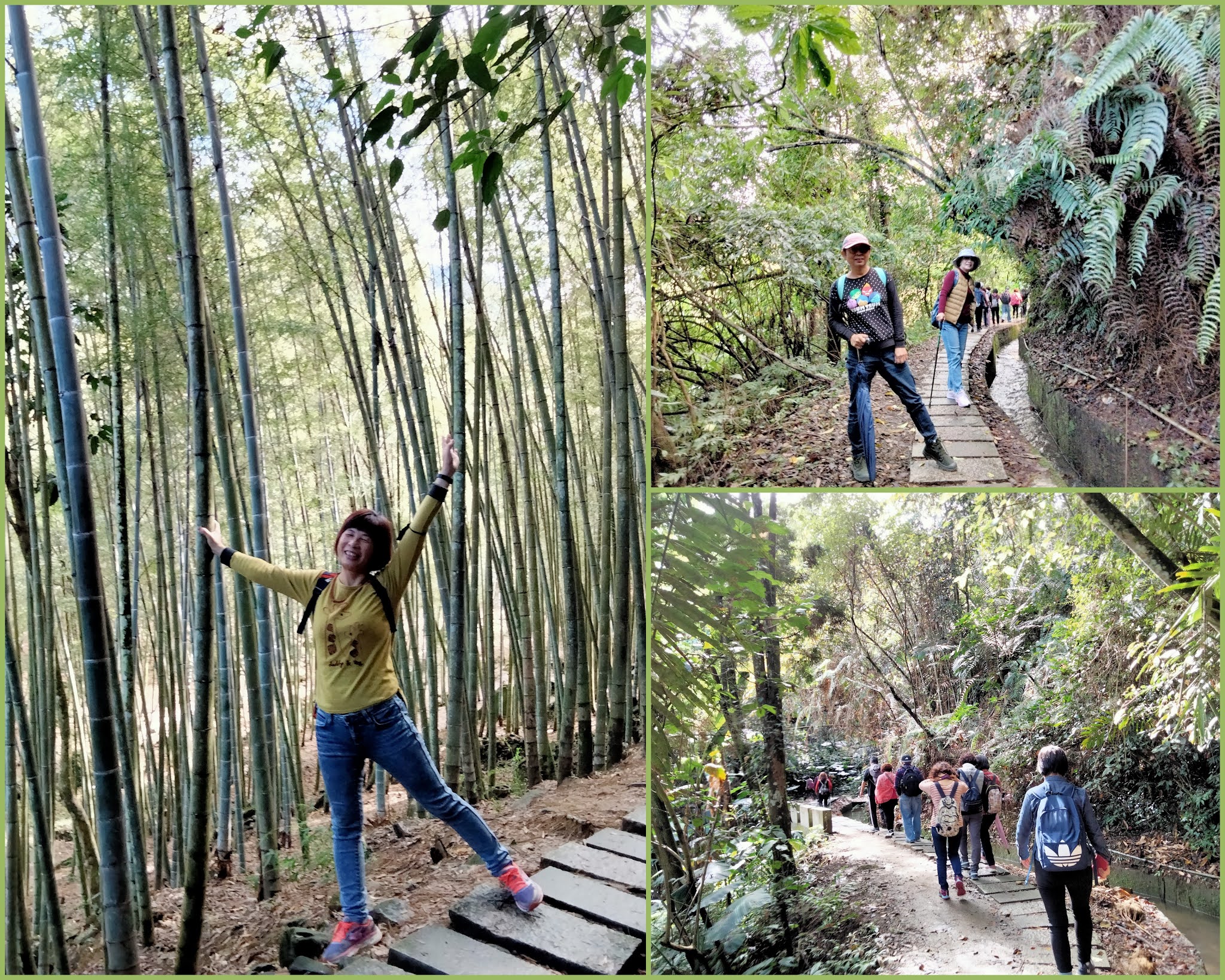 沿著平緩的水圳而行,有清澈的溪流作伴,團員們都讚嘆 著一大片青翠蒼鬱的竹林,我不由自主的深呼吸~~