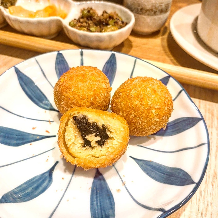 綿密的地瓜包裹著濃郁的黑芝麻餡,外層的皮不會太厚,
