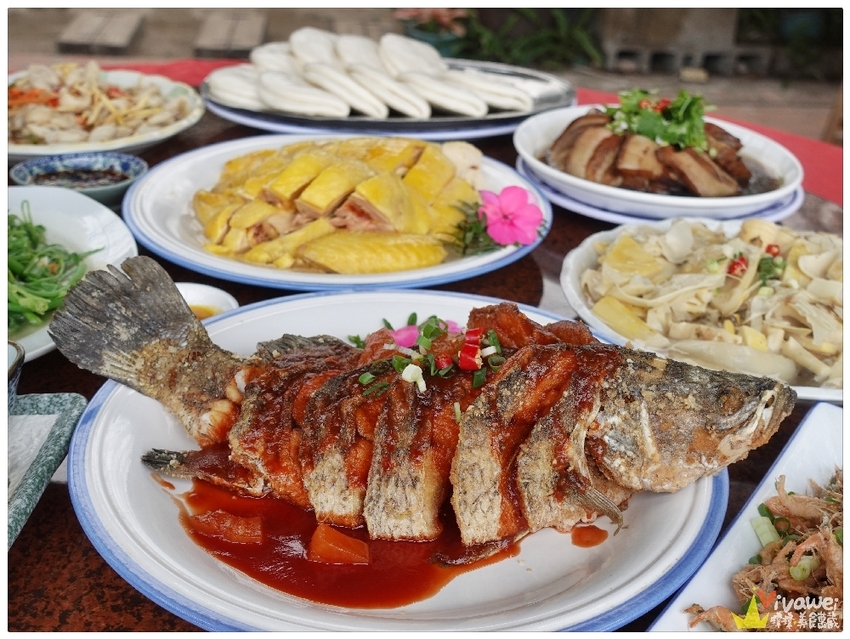 ▲整體來說,這間「三義土雞城」的用餐環境很棒,我特別喜歡他們半露天的花園用餐區,悠閒愜意的氛圍讓人特別放鬆!散客來用餐可以單點,團體客來用餐可以點桌菜,而且停車非常方便,是一間很適合聚餐的客家菜餐廳選擇!這天品嘗了店家搭配好的4000元桌菜,桌菜的菜色還蠻不錯的,10個大人肯定可以吃飽飽!個人特別喜歡黃金土雞盤、糖醋魚、碳烤鹹豬肉、羊奶頭雞湯、清炒龍鬚菜!值得推薦給大家!
