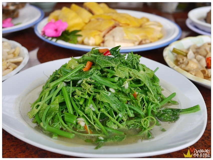 ▲現在提供的季節時蔬為龍鬚菜,這是和在地小農合作的龍鬚菜,完全不灑農藥!使用少許的油和蒜頭拌炒,就是要讓客人吃得健康無負擔!