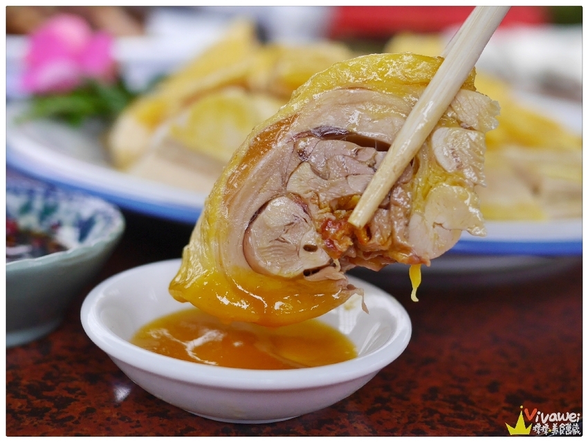 ▲尼看看這個雞肉!光看就知道是好吃的!上面雞皮和肉的中間還有一層膠原蛋白果凍,QQ的肉質非常美味!無論要搭配客家桔醬或是辣椒醬油都很搭!