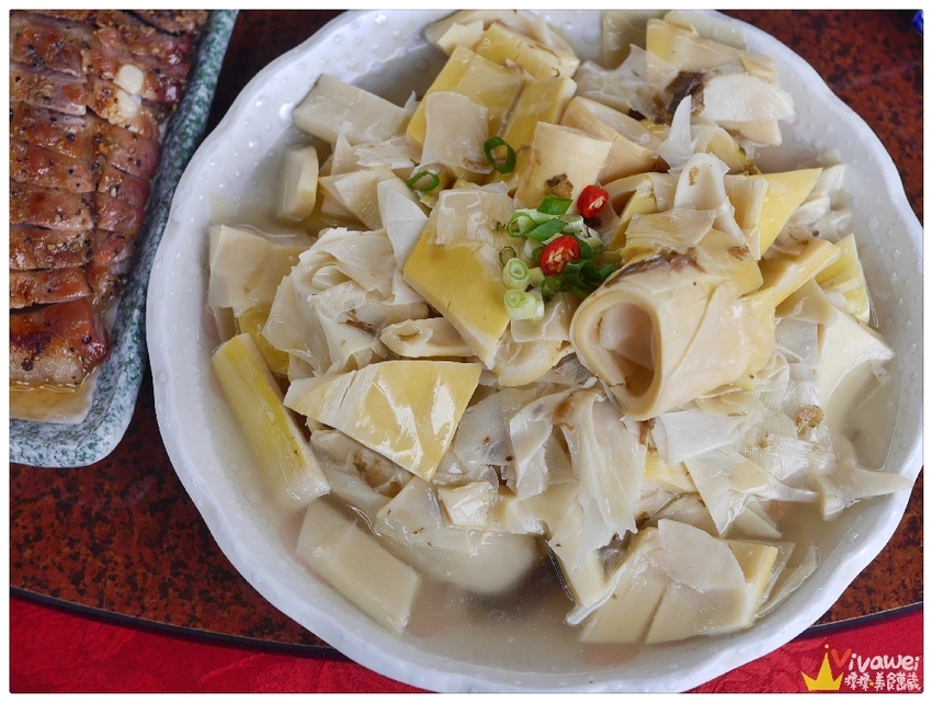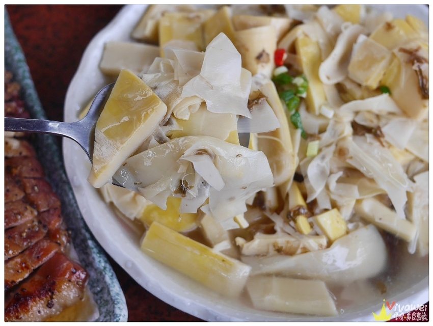 ▲客家的桂竹筍是選用竹篙筍,並加入福菜和雞高湯一起熬煮,喝起來特別鮮甜!而且因為有加入福菜,所以喝起來有種回甘的口感,竹筍的口感鮮嫩,吃起來蠻清爽的!