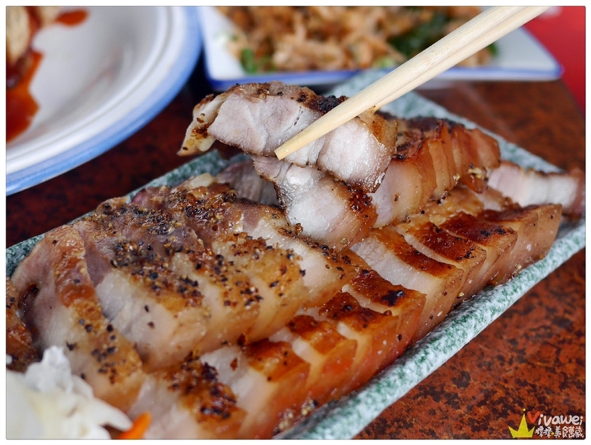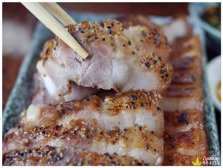 ▲鹹豬肉選用新鮮的三層肉,使用店家的獨製秘方醃漬兩天,客人點餐後才會烤,絕對不會二次加熱。