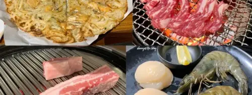 另一盤則是豬肉和海鮮,食材有超人氣豬小排、極盛松阪豬、北海道大干貝、嚴選海大蝦、奶油鮭魚燒~
