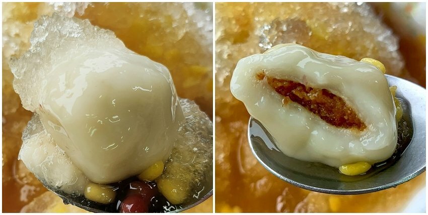 ▼挖開底下豐富的配料,除了在地的綠豆蒜,裡面還有大顆花生湯圓、小湯圓、土豆仁以及紅豆等,值得一提的是他們的糖水香濃美味,搭配起來真的很厲害!