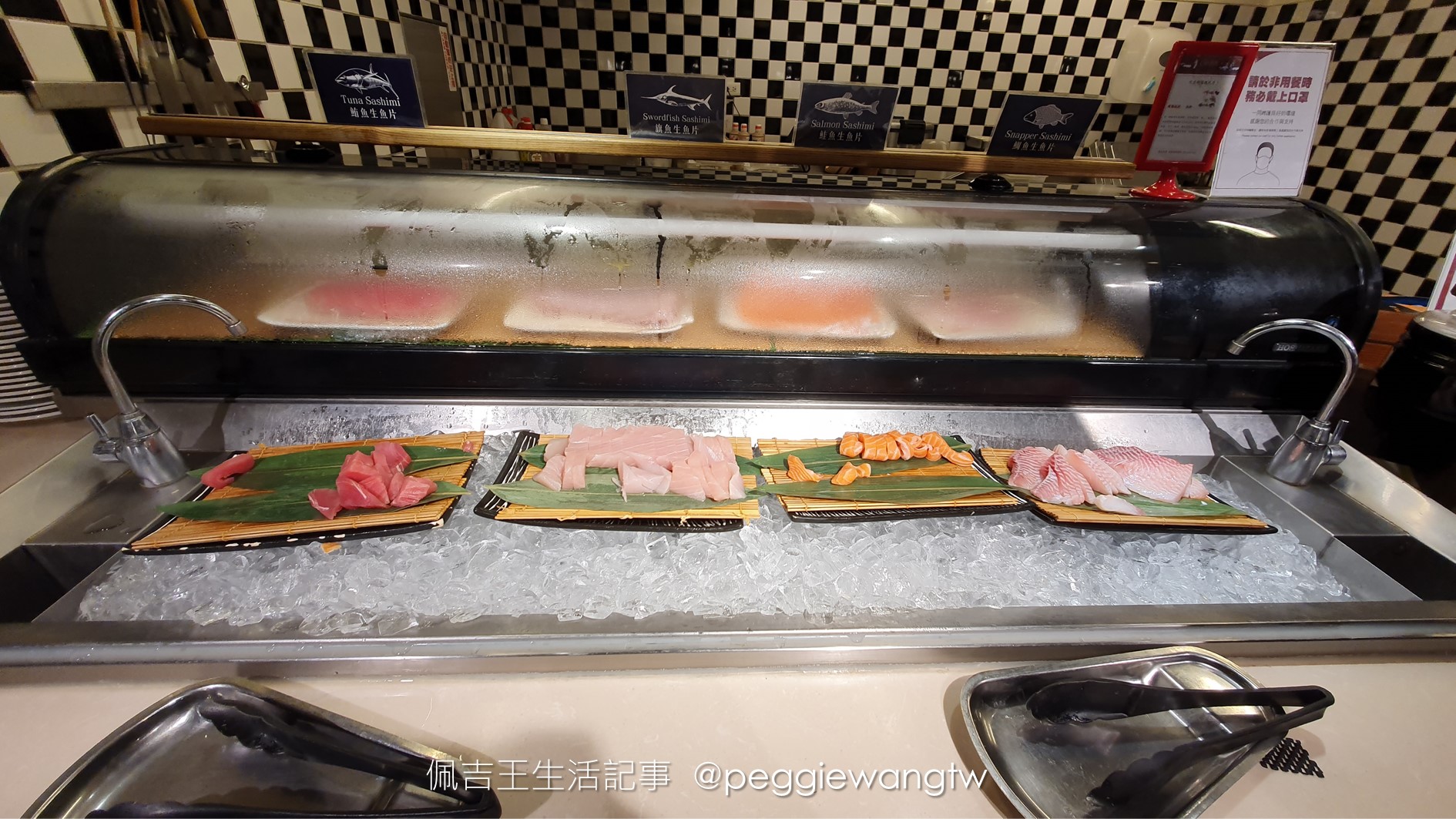| 圖:搶手的生魚片區,鮪魚、旗魚、鮭魚、鯛魚 |