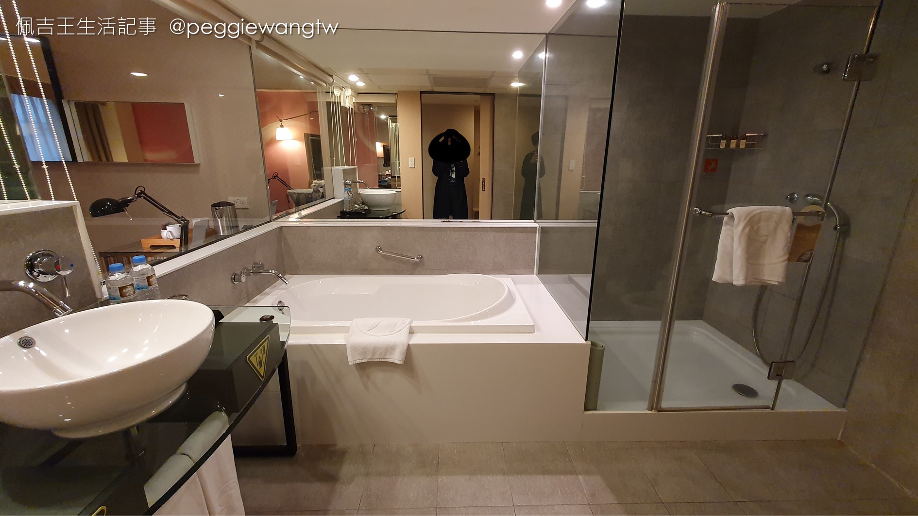 | 圖:浴室幾乎佔客房一半(?),浴缸、淋浴間、廁所、洗手台都在此 |