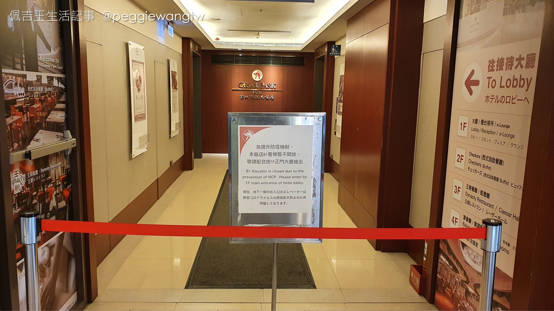 | 圖:提醒!目前防疫期間地下通道電梯已封閉,此處到一樓飯店入口需走樓梯喔 |