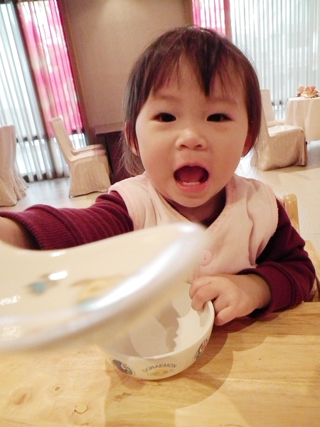 哈哈,即使碗裡空無一物她也是很會玩假想遊戲啊,問她好不好吃,她還會很滿意