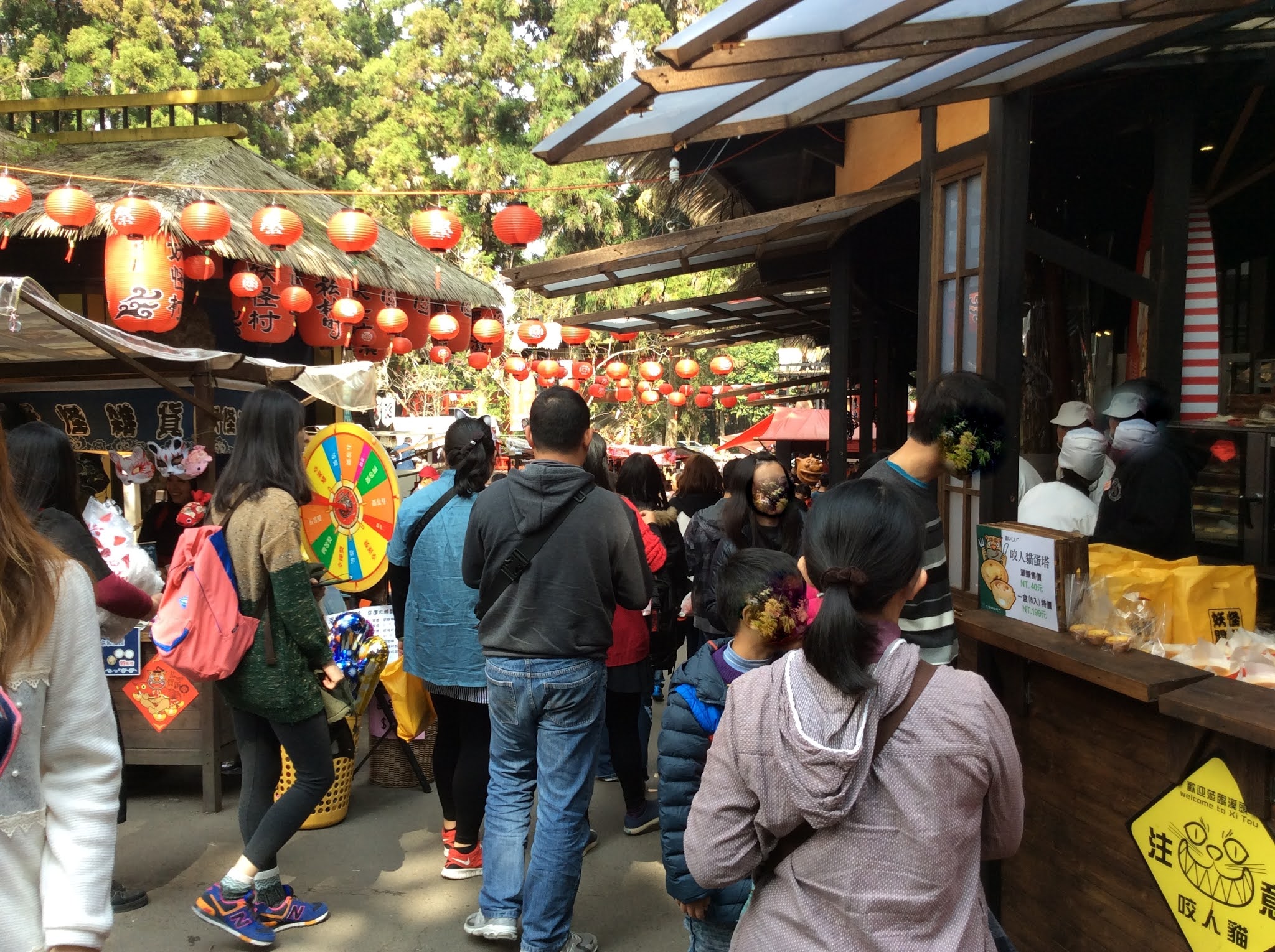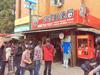 間專賣妖怪村創意商品;黑壓壓的人頭在巷弄裡緩慢移動...