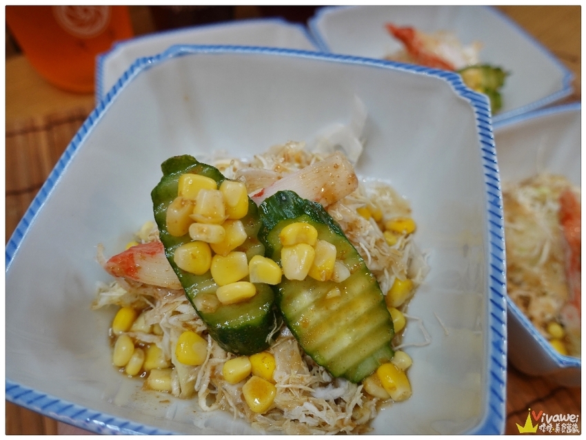 ▲生菜沙拉裡面有高麗菜絲、玉米粒、小黃瓜和蟹肉棒,加了油醋醬,吃起來特別開胃!
