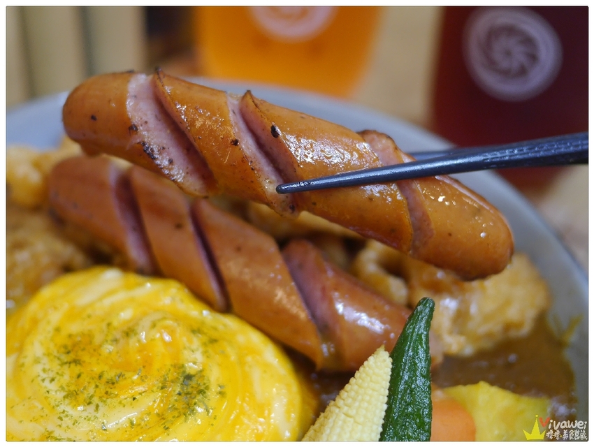 ▲這是店家最熱賣的招牌咖哩口味!使用大量的蔬菜泥熬製,是偏日式的大眾口味~而且我們還有額外+40元點了德國香腸,讓這份招牌雞唐揚蛋包咖哩看起來更澎派👍