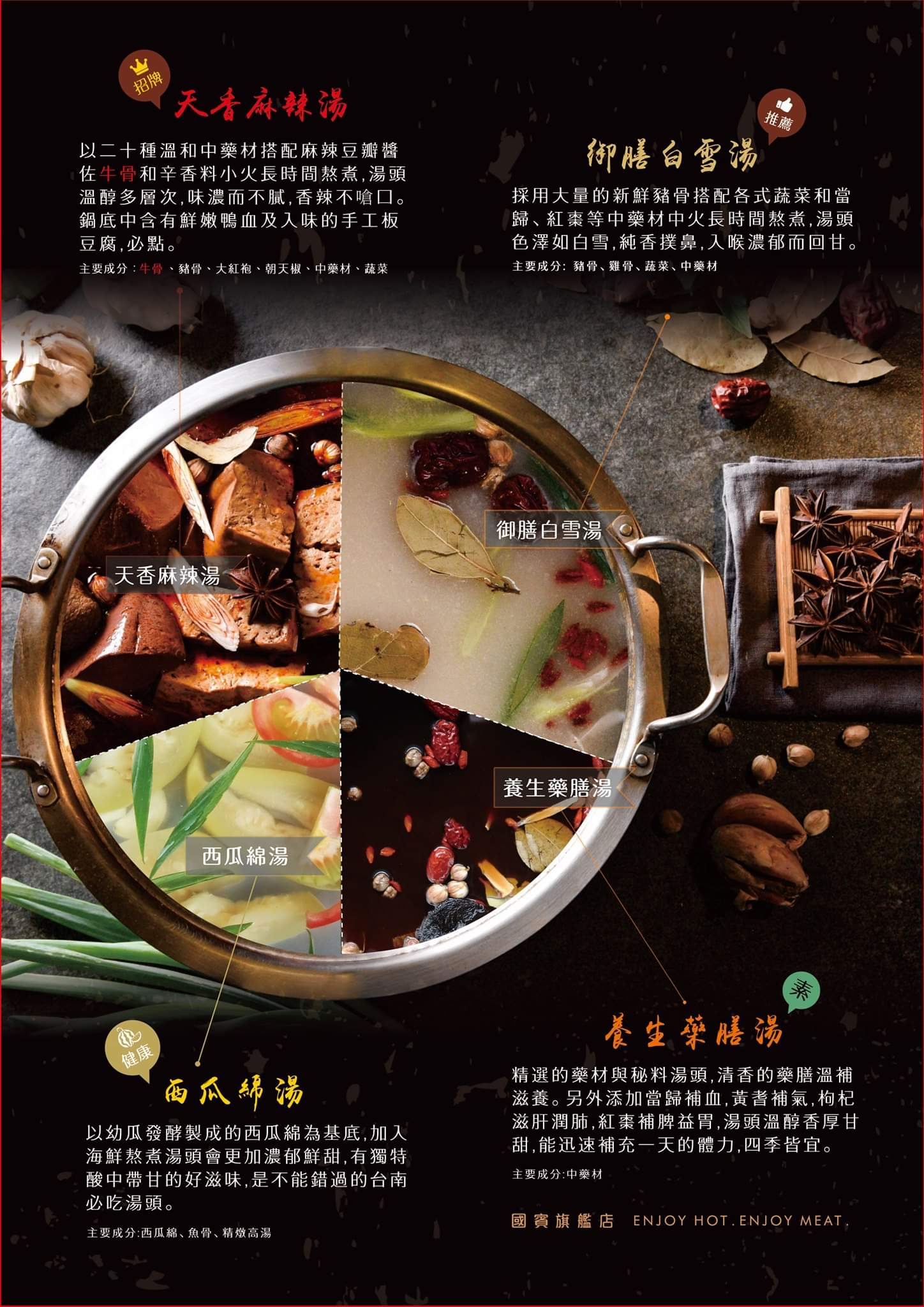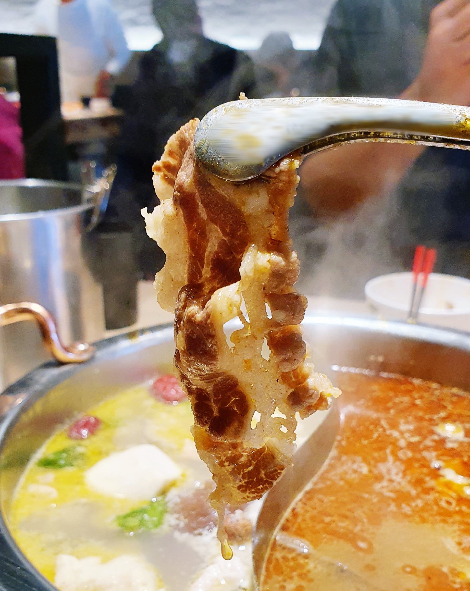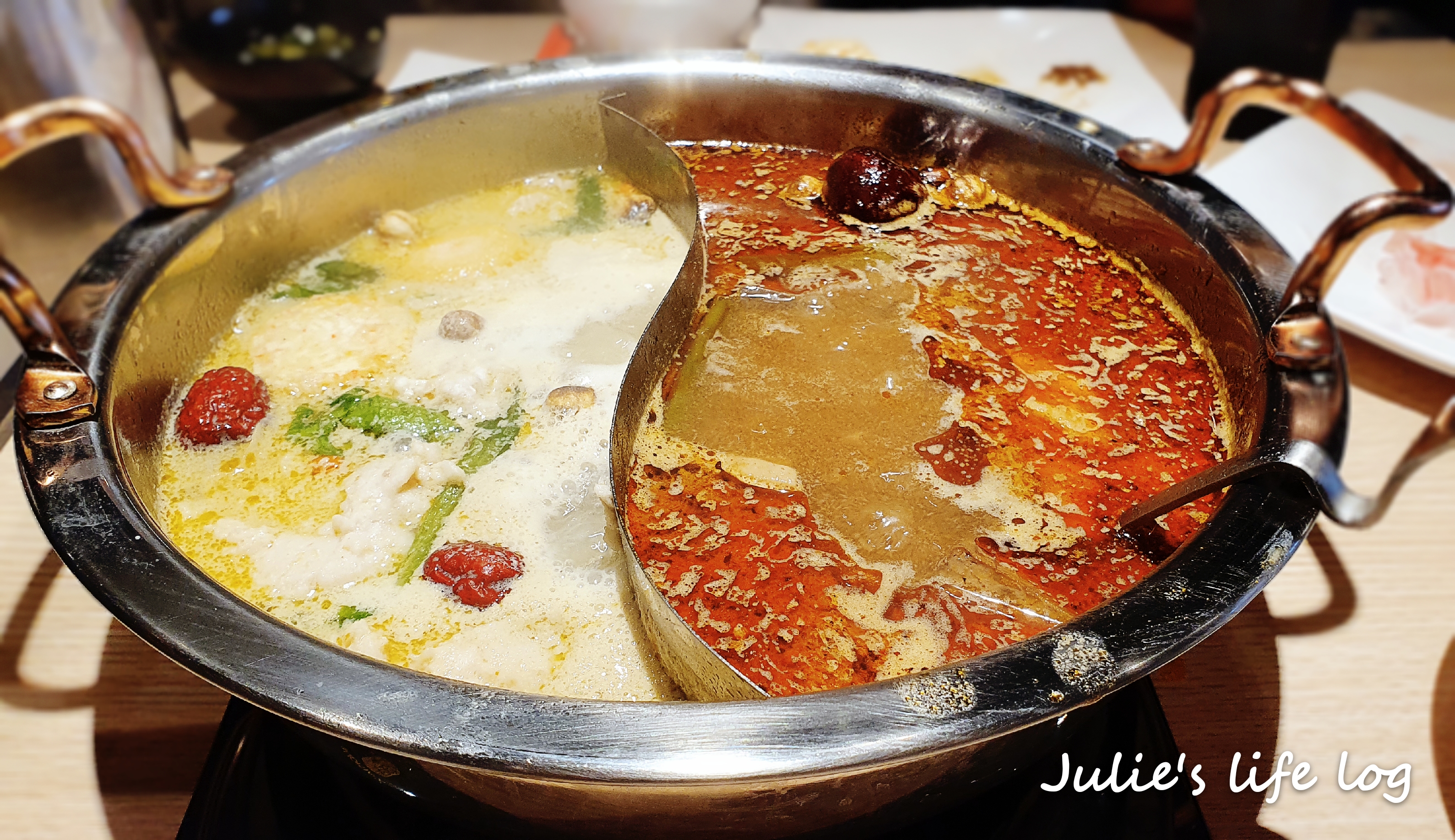 可選兩種湯底,麻辣鍋是必點,但我在西瓜綿湯和御膳雪白湯之間掙扎了許久,想吃溫潤的雪白湯,又想吃鮮甜的西瓜綿。最後先生幫我解決選擇障礙,選了御膳雪白湯。西瓜綿就下次再吃囉!