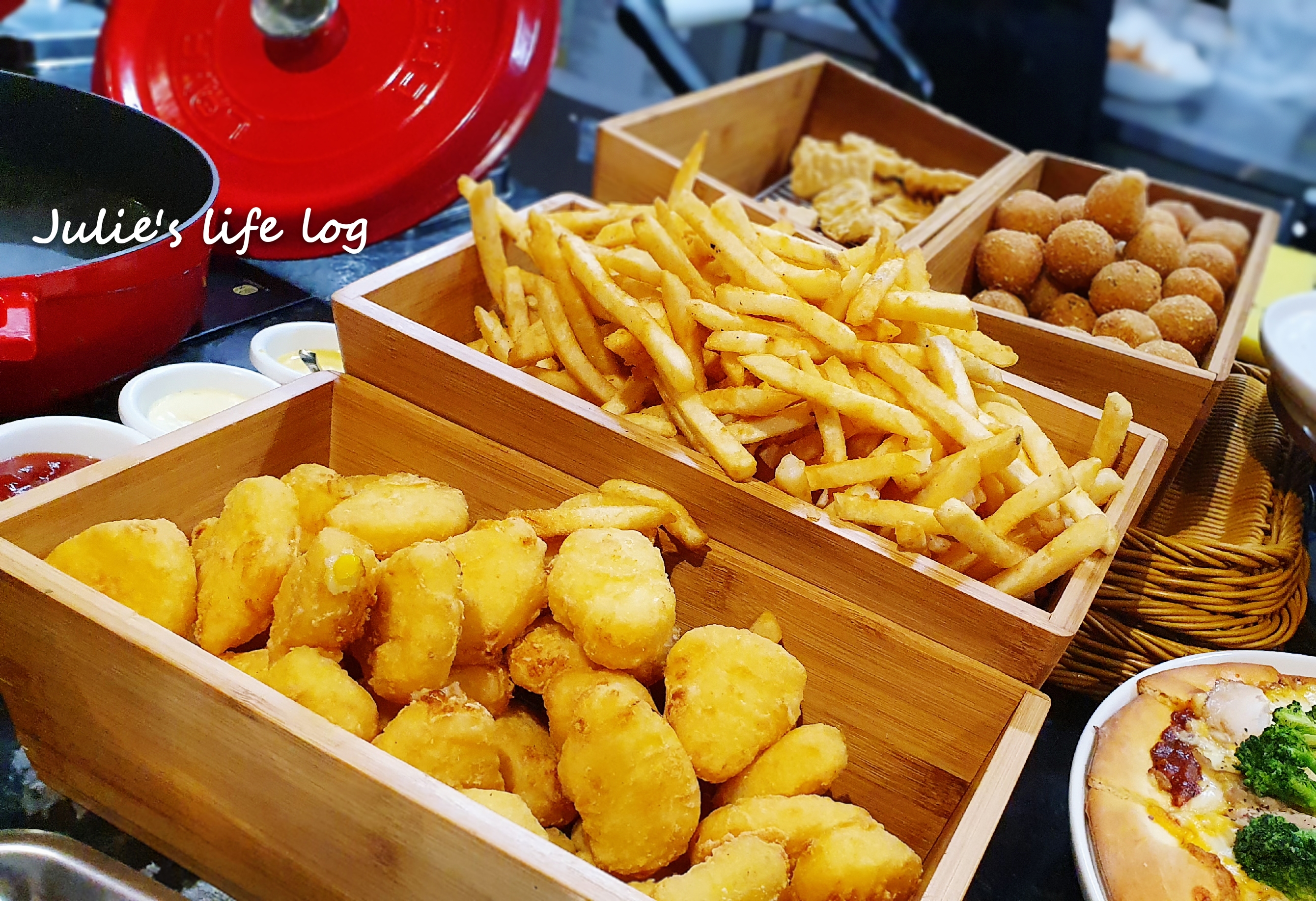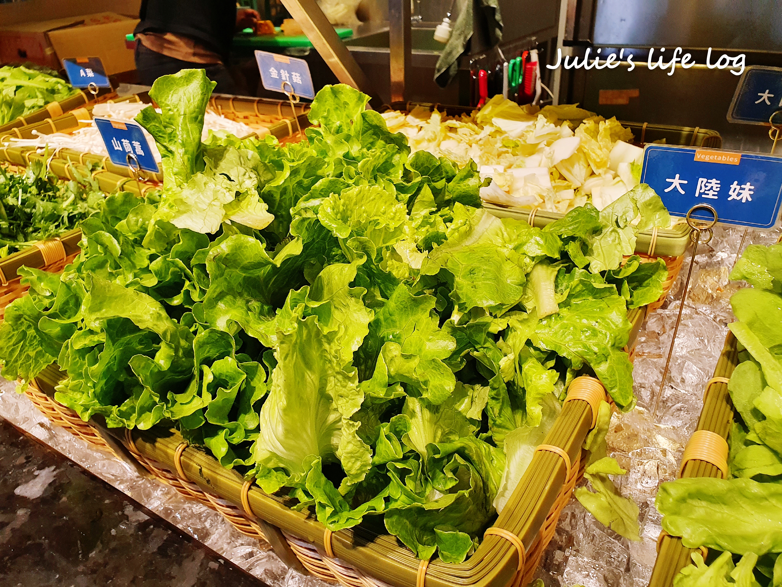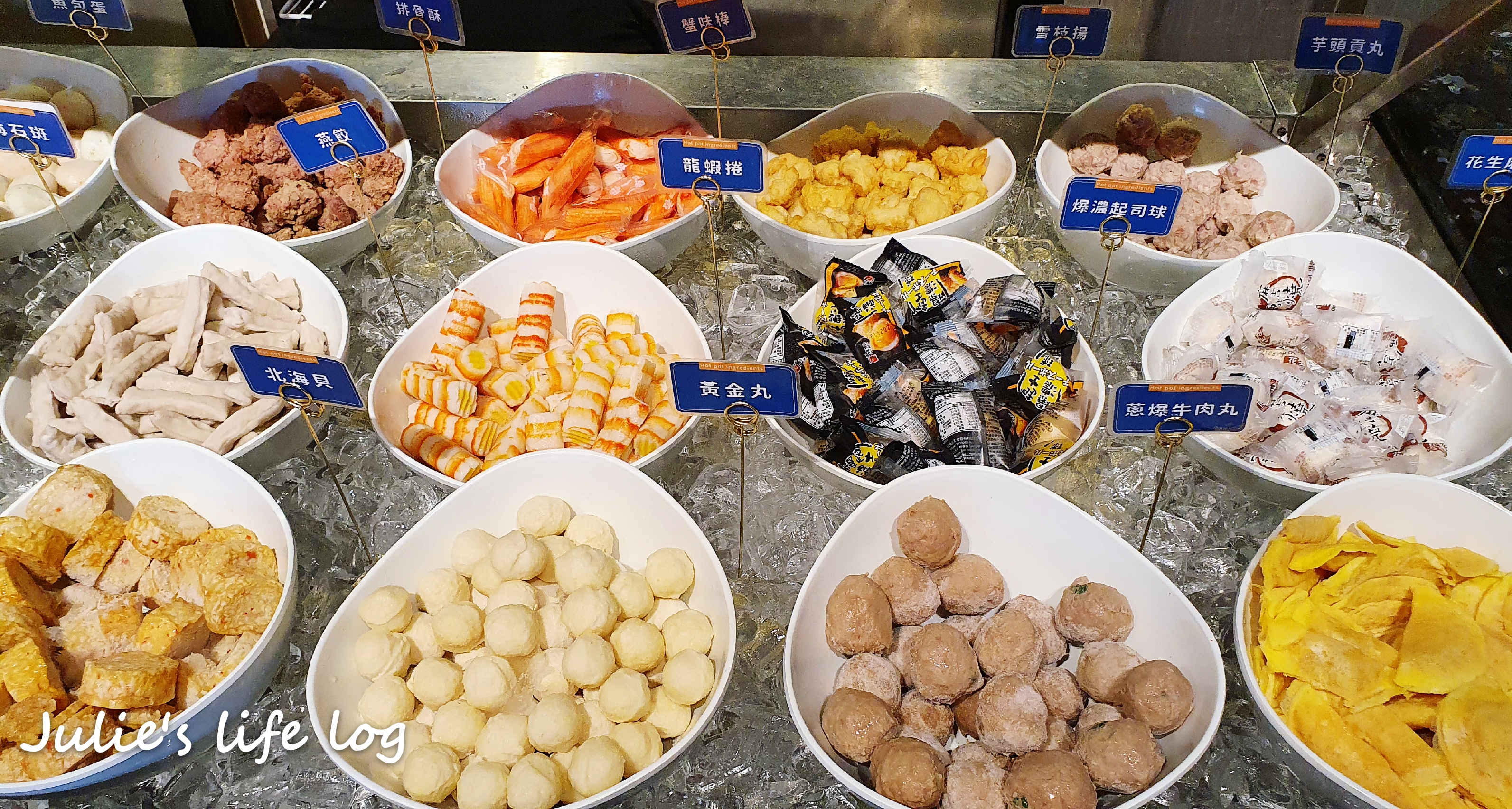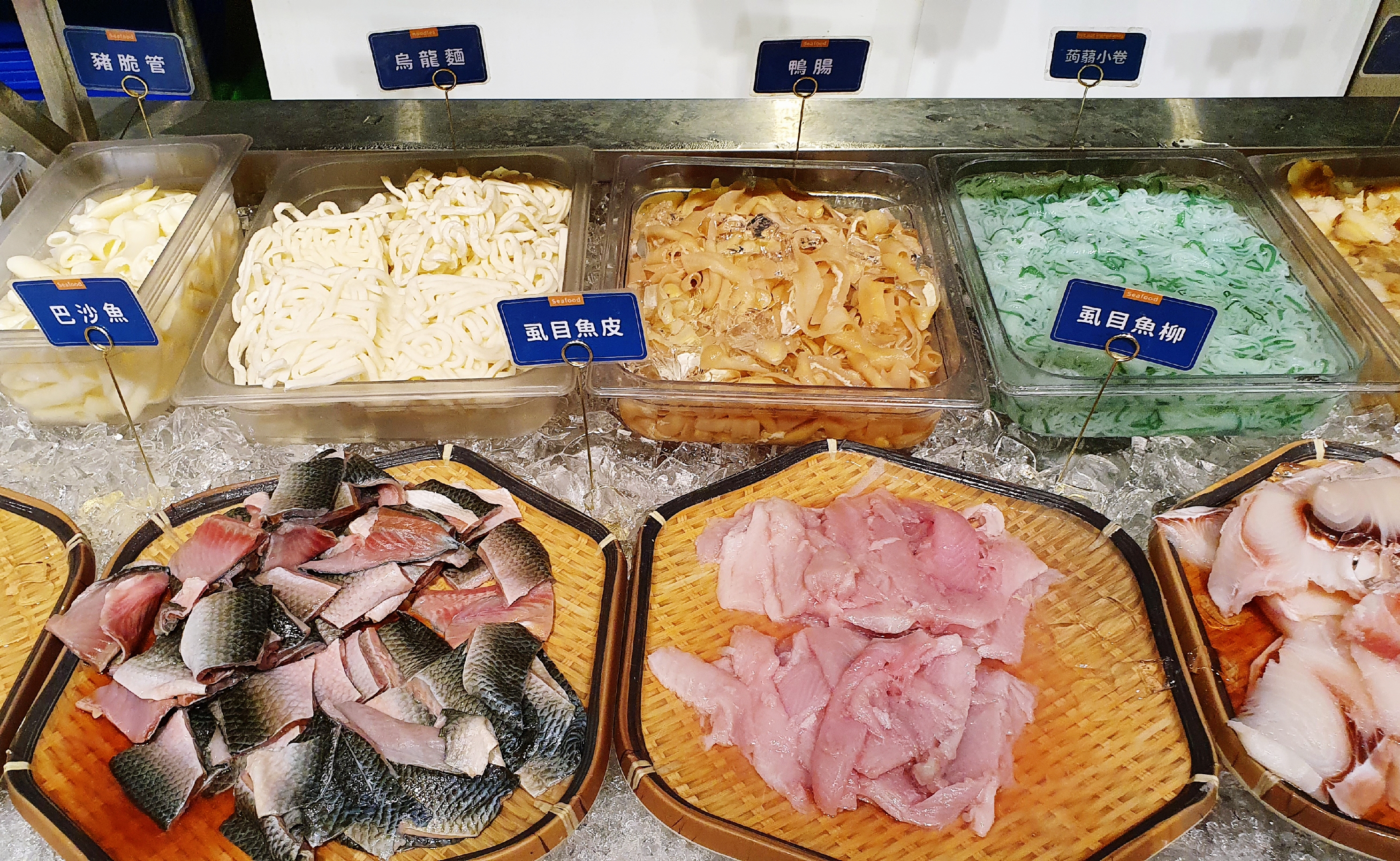 海鮮種類滿多的,鮭魚頭、石斑魚投、淡菜,右後方外型像竹子的叫做「竹蛤」,去海產店常看到,但我第一次在吃到飽的火鍋店看到這種食材!